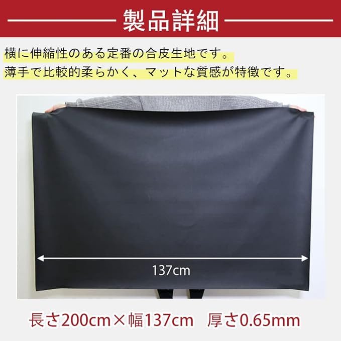 合皮 フェイク レザー 生地 ソフト 柔らかめ 薄手 幅137cm x 長さ200cm ハンドメイド DIY 製作 椅子 バイク シート ソファー のリフォームに適しています(黒色)