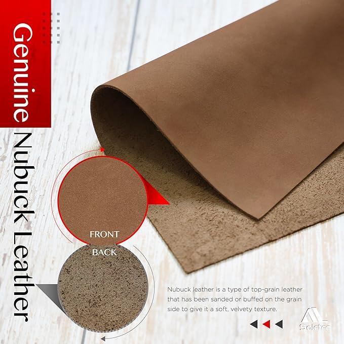 [Soletec] ソレテック 本革 ヌバックレザー 厚手の牛革シート カット済みピース クラフト 裁縫用 ヌバックブラウン 1.5-1.7mm (35.5x18センチ)