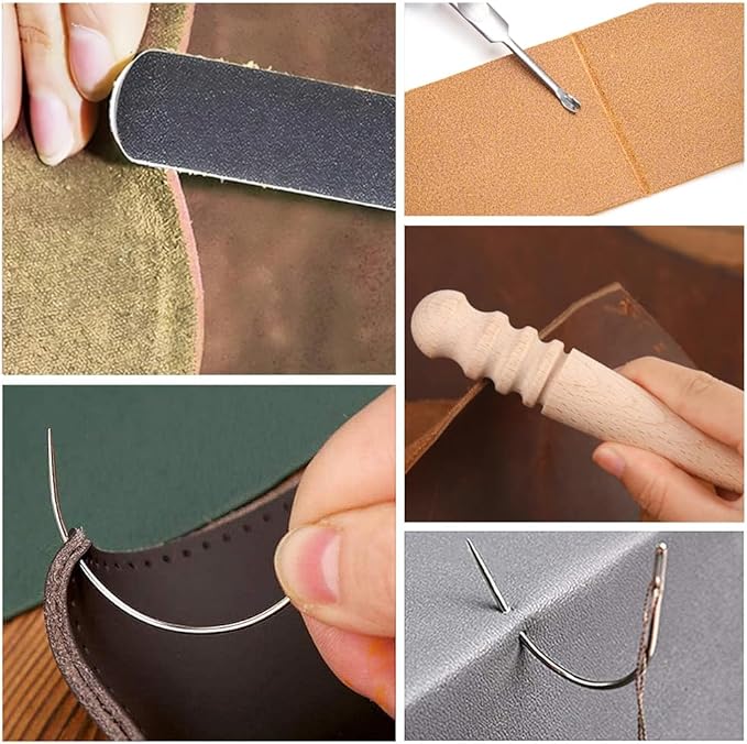 サムコス レザークラフト 革工具セット 裁縫工具 皮革工具 針 手作り 革用 レザー 紐 ワックス糸 手縫い 工具 DIY 縫製キット ザーツールセット (24個セット)
