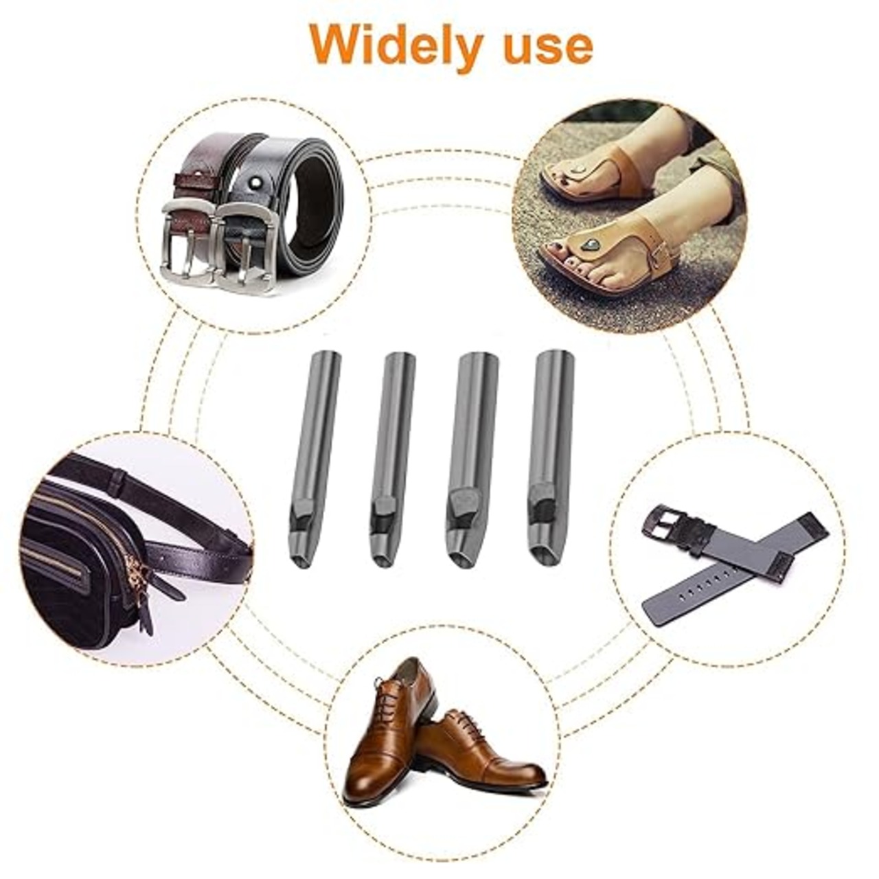 【セット内容】全長サイズおよそ10cm、楕円形穴パンチ - 4つの異なるサイズ(2*7mm、3*6mm、3*8mm、4*7mm)。 ベルト時計バンドの革加工に最適です。