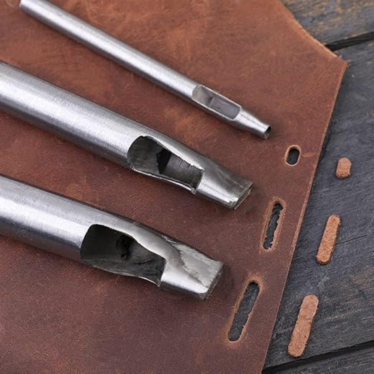 【高品質素材】当社の中空パンチセットは、硬化、熱処理された炭素鋼で作られており、耐久性があり、長持ちします。 焼き入れが良く耐久性のある切れ味が特徴の革中空ポンチです。