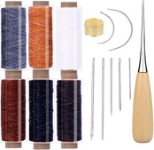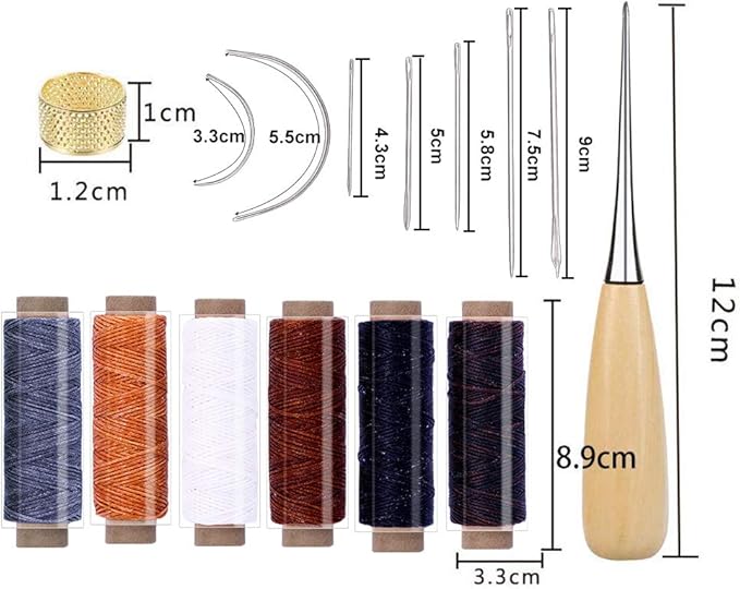 15点セット内容:7*革製の縫い針、1*ストレートヘッド千枚通し、6*革製のワックス糸コード、1*シンブル 重量:0.19kg