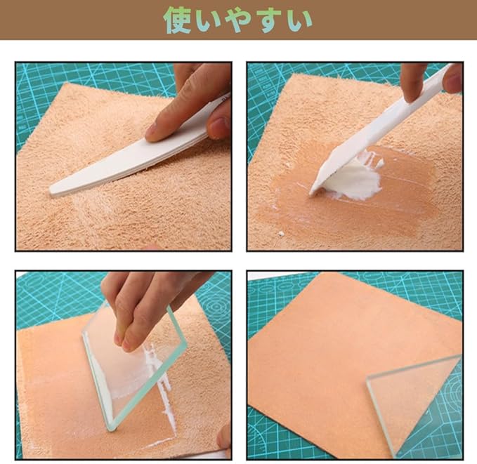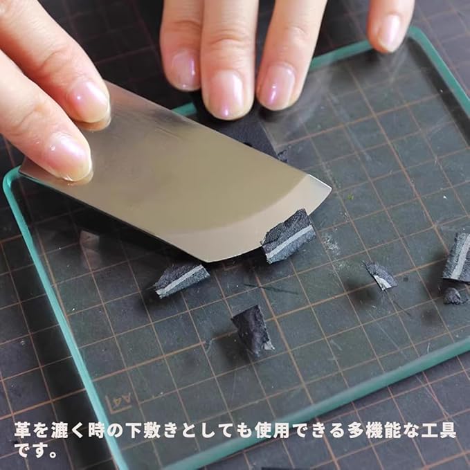 ★床処理剤を使って滑らかに仕上げることができる革床面磨き用の厚ガラス板です。力を入れやすい厚みがあり、安定した作業が可能です。
