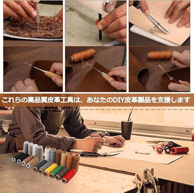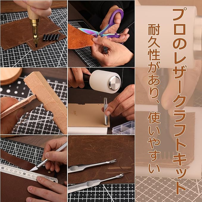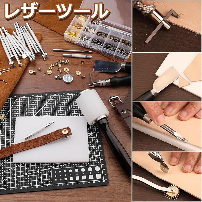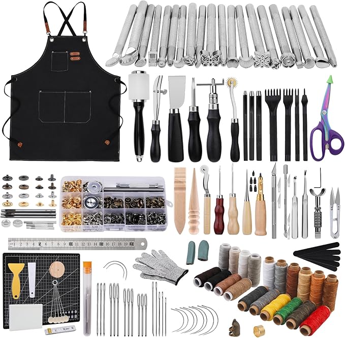 レザー加工スターターキット:当社の308個レザーツールキットには、レザーカービングツール、レザースタンピングツール、レザーパンチングマシン、レザーミシン針、その他の便利なレザー加工ツールや縫製ツールが含まれています。 この完全なエントリーレベルのレザーキットは初心者に非常に適しています。