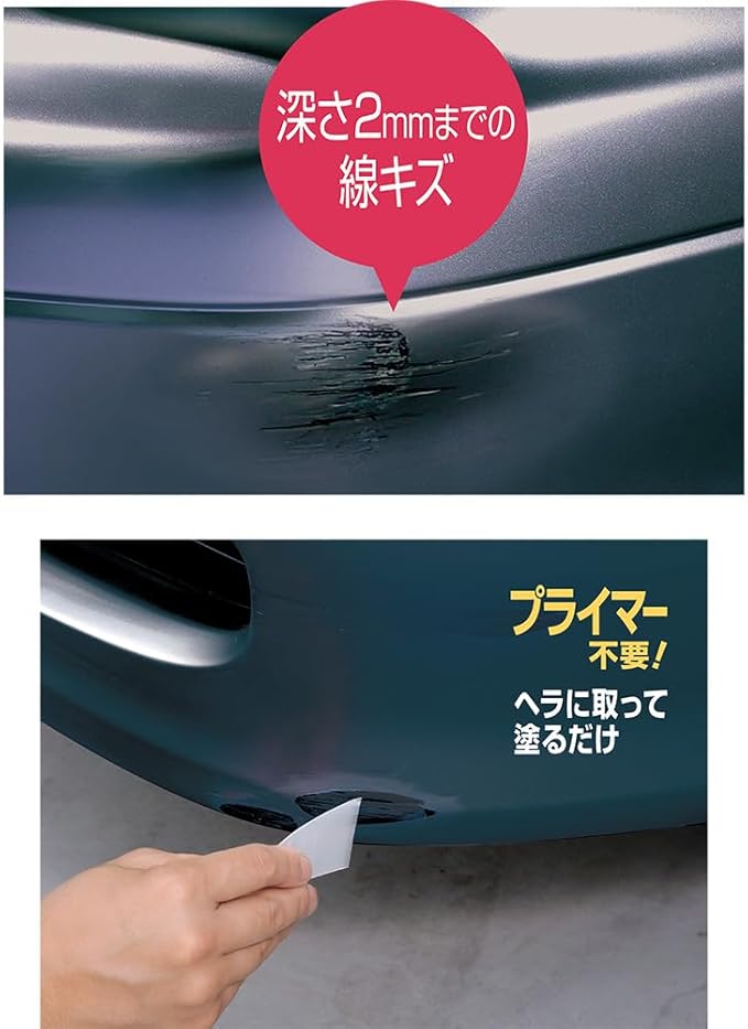 バンパーの主力素材PP(ポリプロピレン)に密着力の良いバンパー専用うすづけパテ。