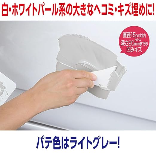 白・ホワイトパール系の自動車ボディの大きなヘコミ・キズ埋め用パテ