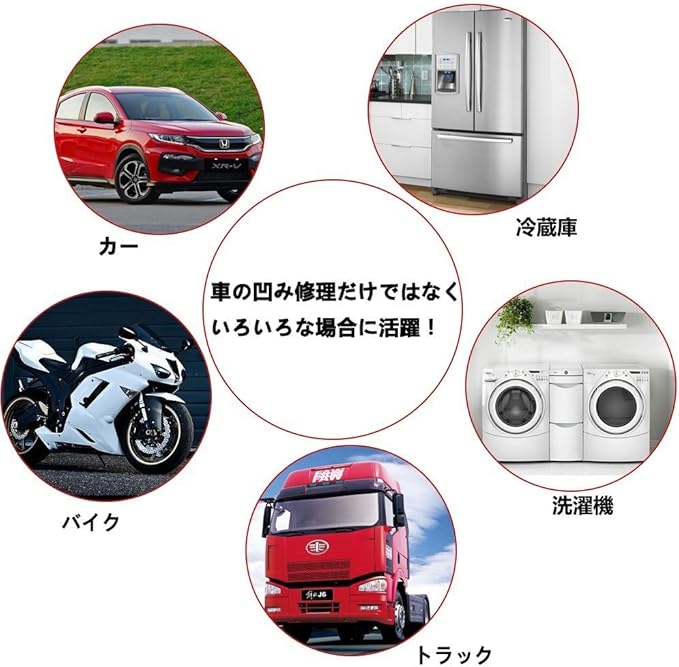 応用範囲:ボディ&フェンダー補修ツール、車&バイクの凹み直しです。または冷蔵庫、洗濯機などの凹みを修理できるDIY修理ツールです。凹みの大きさによってタブを利用してください。