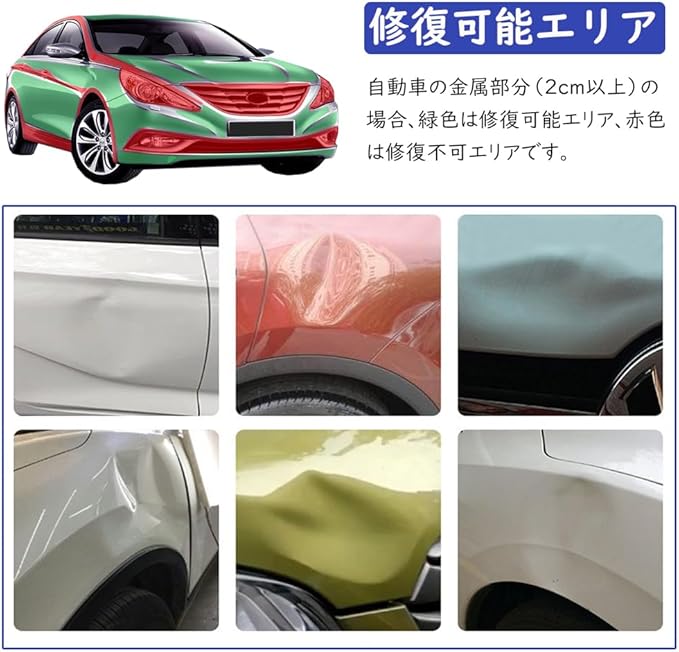 【緊急時に役立つ車載用サイズ】コンパクトな収納ケース付きで、トランクに常備可能。旅行先での突然の雹被害や駐車場の凹み事故にも即対応できます。