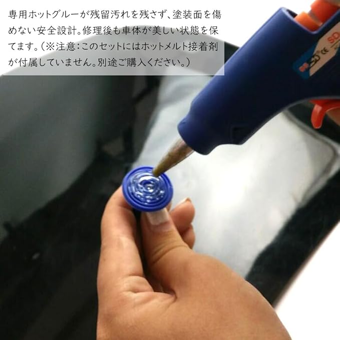 【接着剤不要のクリーン仕様】専用ホットグルーが残留汚れを残さず、塗装面を傷めない安全設計。修理後も車体が美しい状態を保てます。