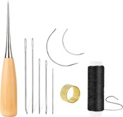 セット内容:計10点セット。指貫*1、千枚通し*1、蝋糸*1、裁縫用針*7。