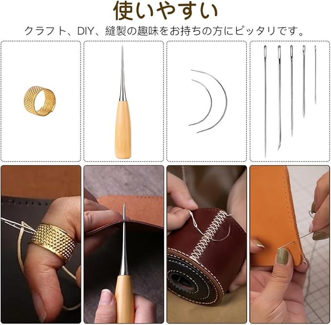 ワックス糸:丈夫で壊れにくく、スムーズな縫製が可能です。