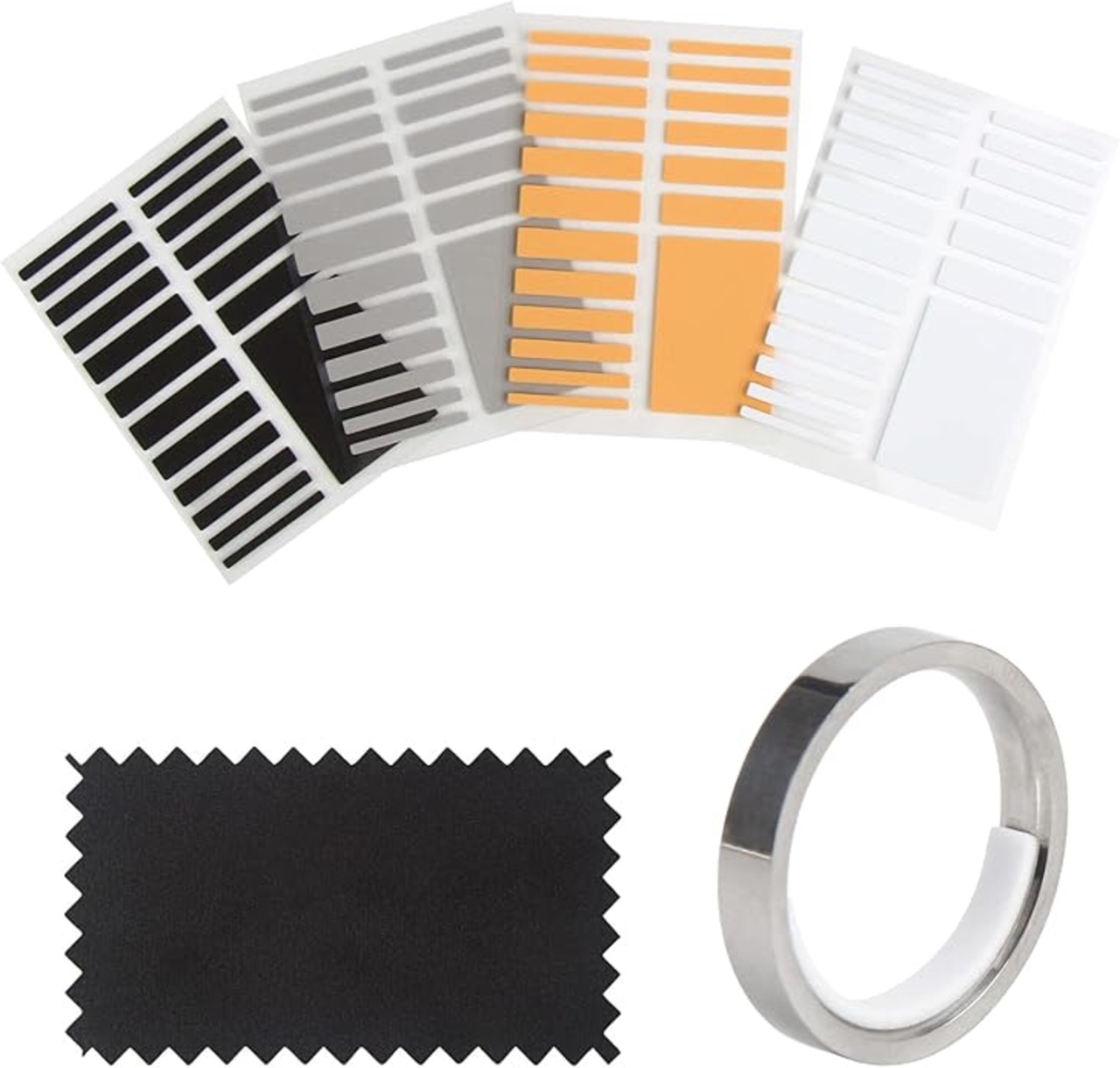 ❤セット内容:4色シート・各1枚(イエロー ・グレー・ホワイト・ブラック、1枚シートに19PCS・合計76PCS),銀磨きクロス布 1