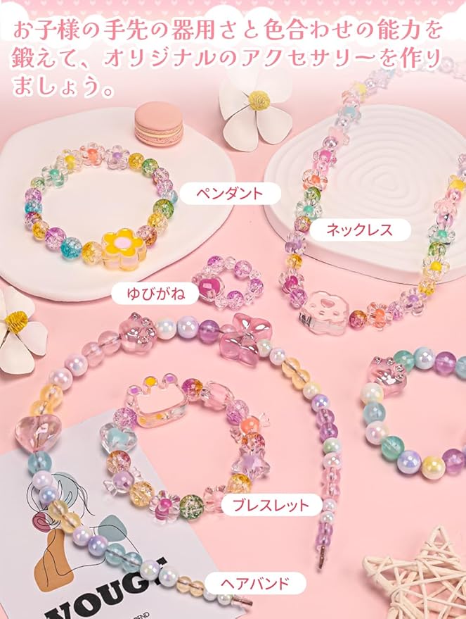 【豊富な女の子 おもちゃ】ビーズ 手芸 に用いられる小さな飾り玉。アクリル製で、様々な形があり、色も多様、つないで使います。ネックレス、ブレスレット、キーホルダー、ピアス、手飾りなどに最適です。おしゃれ心が芽生えだす女の子にとって魅力的な、かわいいオリジナルのアクセサリーを作りましょう!6歳以上の子供に適用しています。