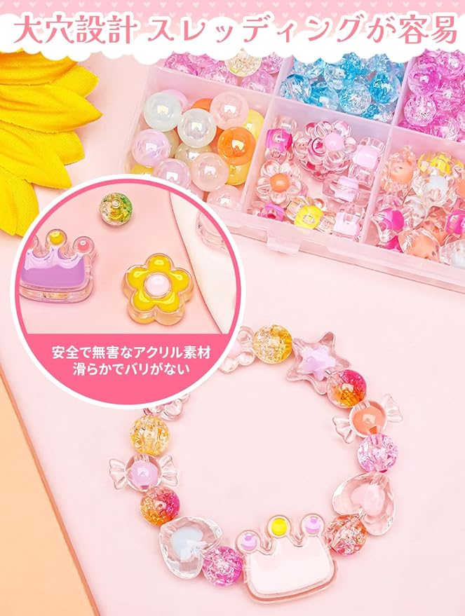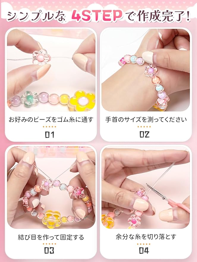 【収納にも便利】便利な収納ケース付き、アクセサリーを作りたい時に簡単に持ち出し、遊んだ後はすべてケースに入れれば、簡単にお片づけができます。子供の収納意識を高めるだけでなく、省スペースでパーツの紛失も防ぎます。