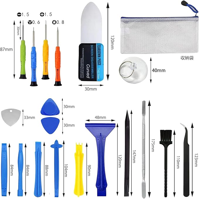 この分解・修理キットはスマホの修理だけでなく、タブレット、ノートパソコンPC、コンピュータ本体、ゲーム機、その他の電子製品修理にも適用可能です。