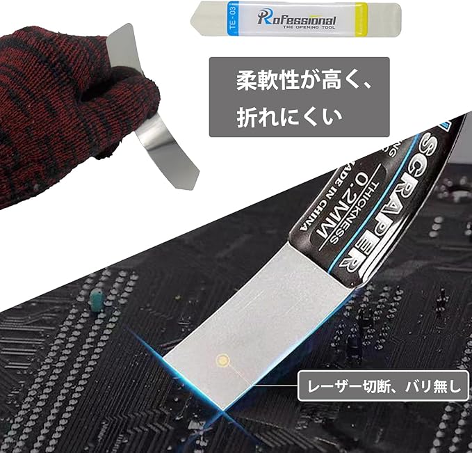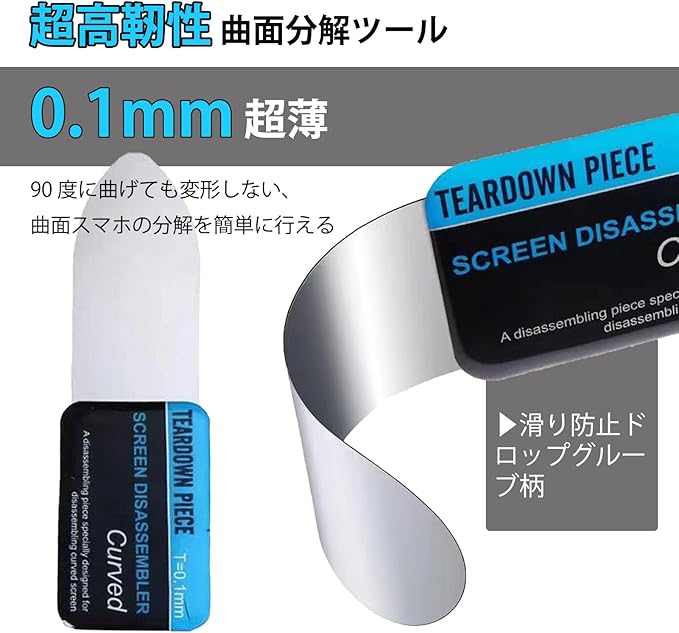 柔らかい反り刃は高い靭性を持ち、90度曲げても変形して壊れない、曲面スマホの分解が簡単です。 4、