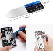 【商品仕様】薄い0.1mmスパッジャー 1、スパッジャー 2、金属ヘラ 3、吸盤オープナー 1。様々な分解をこれ1つの工具セットで解決できます。