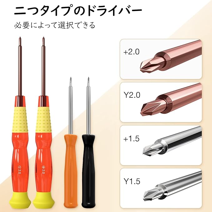交換用スティック 4Y字ドライバー(2.0)*1+字ドライバー(2.0)*1Y字ドライバー(1.5)*1+字ドライバー(1.5)*1三角ピック(ケース開き)*1清潔ブラシ*1ピンセット*1バックルロック*2保護キャップ*4Y字ネジ(1.5)*4+字ネジ(1.5)*2バッテリーはがし*1