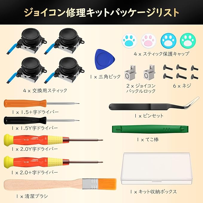 「24in1ジョイコン修理キット」ジョイコンにはドリフトなどの不具合状況になってすぐにゲームに戻したい時に!素人でもジョイコンを修理できる大活躍してくれる24点セットのジョイコン修理パーツです。