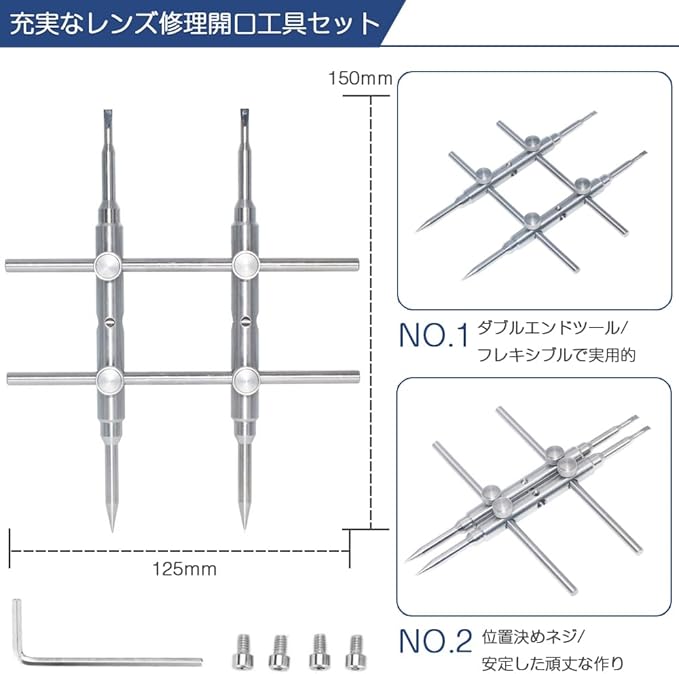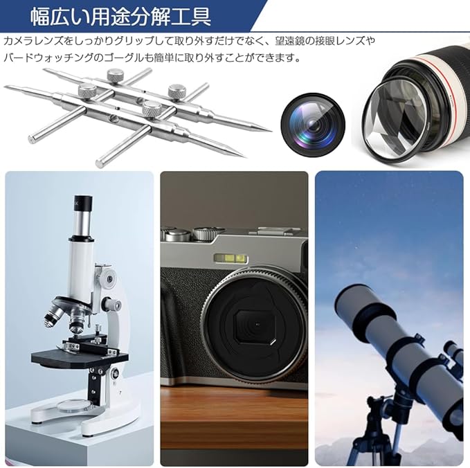 セット内容:カニ目レンチ1本セット;材質:ステンレススチール;25mm-100mmまでのすべてのレンズを取り外すことができます。スーパー望遠鏡、マッピングプリズム、顕微鏡、バードウォッチングスコープなども取り外せます。