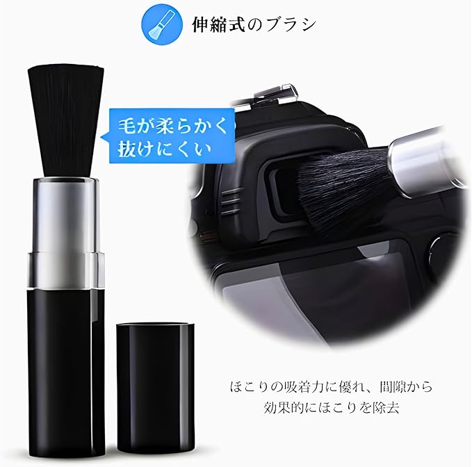 【光学設計】無毒性カメラレンズ&センサークリーナーキットは、機器を傷めることなくクリーニング、水曇りも残しません。【レンズペン】ブラシとチップで組み合わせの構造で、いつでもどこでもクリーニング液不要で簡単クリーニング。またチップはカーボン粉末が付き、カーボン粉末で指紋や皮脂を残さず確実に吸収、静電気を除去しホコリの付着を防止。(お勧め使用手順:ブロア→ブラシ→チップ→ブラシ→ブロアー)【レンズペンのスタイルは更新されており、新旧スタイルはランダムに発送します、何卒ご了承の程宜しくお願い申し上げます】