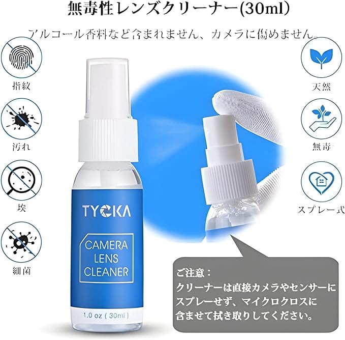 TYCKA 9点セット カメラクリーニングキット カメラメンテナンス 清掃用品 30mlクリーニング液&6枚センサースワブ カメラクリーナーキット 防水袋付き DSLR レンズ VRゴーグルおよび電子機器用 TK005