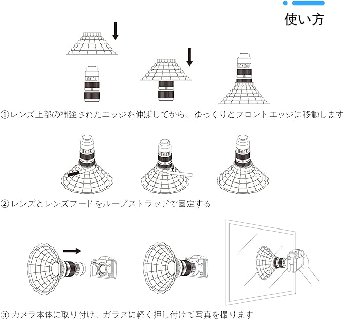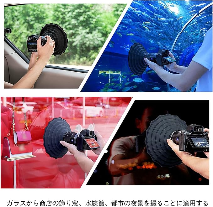 【アップグレード版】内側のホールが波状のデザインを採用しており、レンズの取り付けが容易になり、取り付け中に破れにくくなっています。拡張されたシリコンのデザインにより、ガラスに寄りかかって撮影するときにレンズに触れにくくなり、レンズの保護が強化されます。