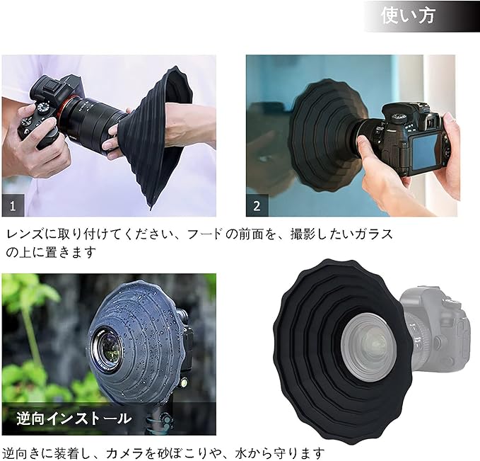 【持ち運びが容易】このレンズフードはシリコン製、折り畳み可能です。使わない時に折りたたんで持ち運びやすい、収納できます。