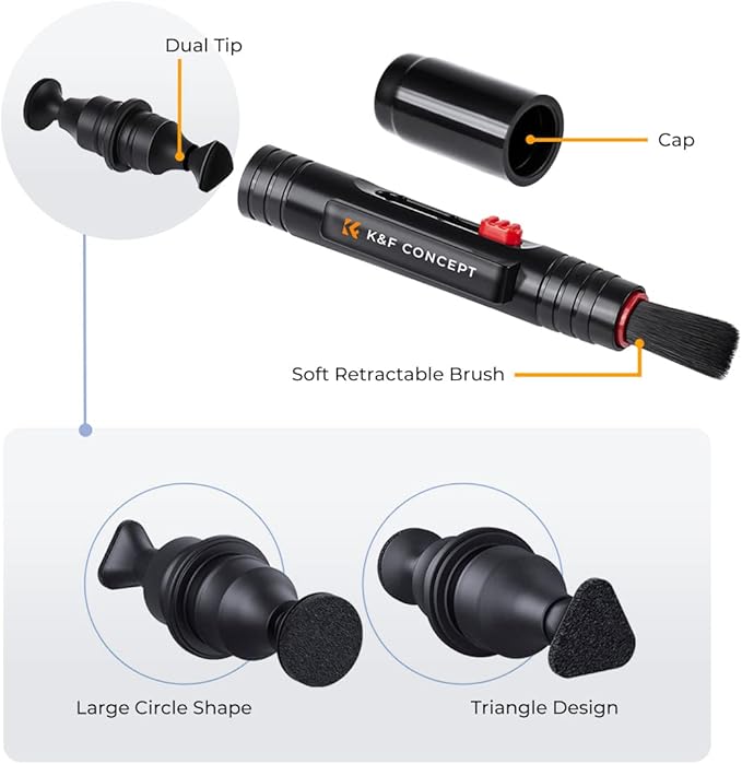 K&F Concept レンズクリーニングペン カメラ スマホ タブレット 眼鏡 | 柔らかいブラシ付き | 汚れや指紋を簡単に落とす