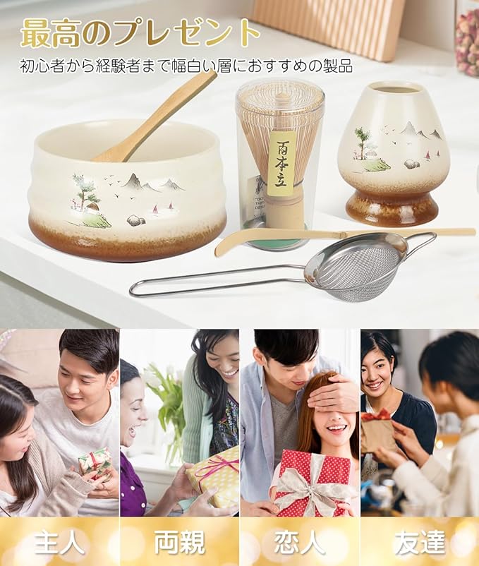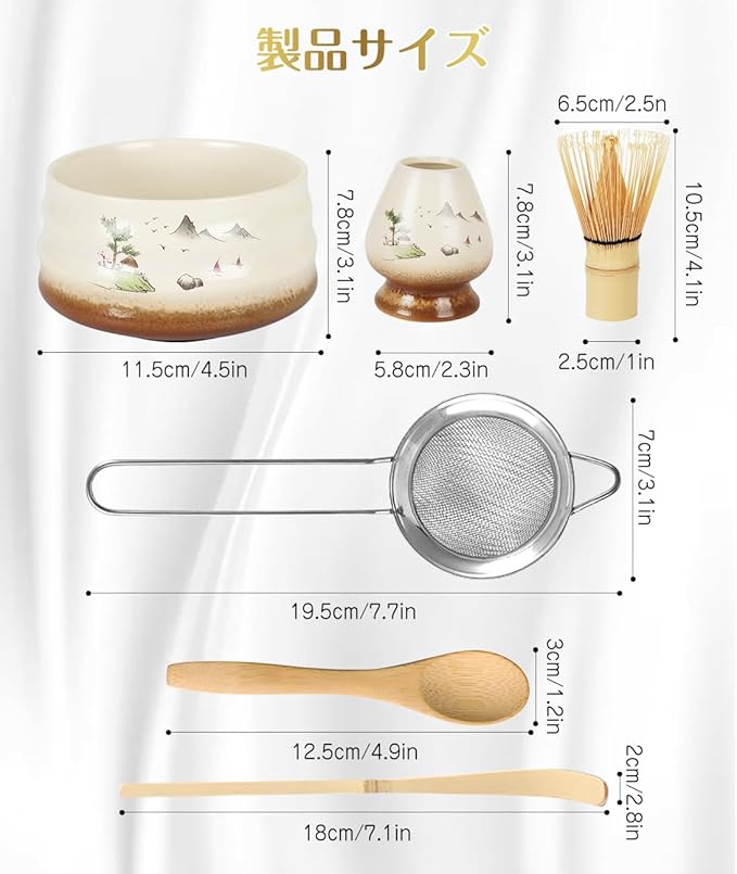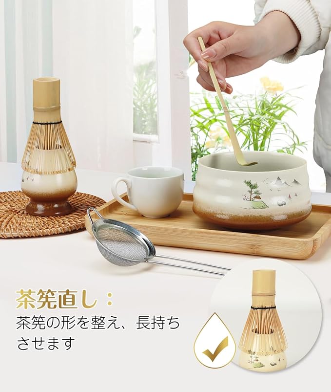 【シンプルな素材】この抹茶ツールセットは抹茶初心者やアマチュアに最適な、抹茶作りに欠かせないツールがほぼすべて揃っています。高品質のセラミックと竹の素材で作られています。すべての素材は自然で毒性がなく、安全で信頼性の高い方法で使用できます。エッジ処理は繊細で滑らかに磨かれ、形はシンプルです。