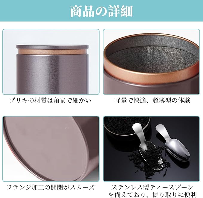 【便利なスプーン付き】:茶葉を取り出しやすくするため、304ステンレス製のスプーンが付属しています。道具を追加することなく、簡単に計量できます。茶盒に茶葉を入れるたびに、最適な茶葉の量を確認できます。