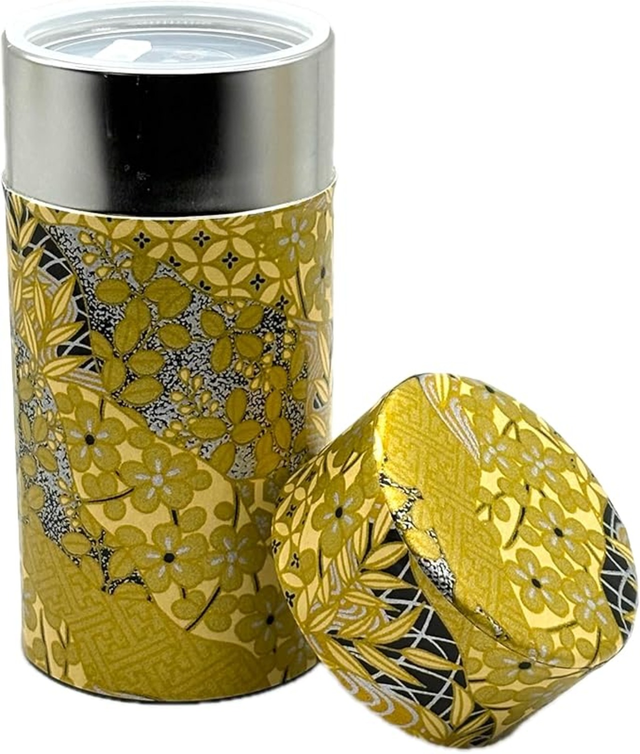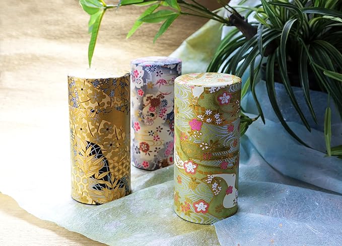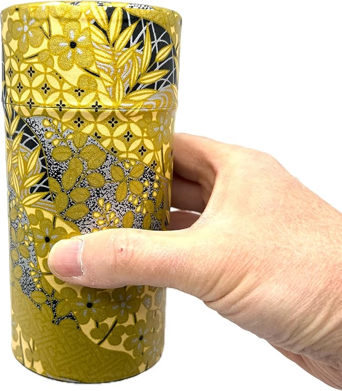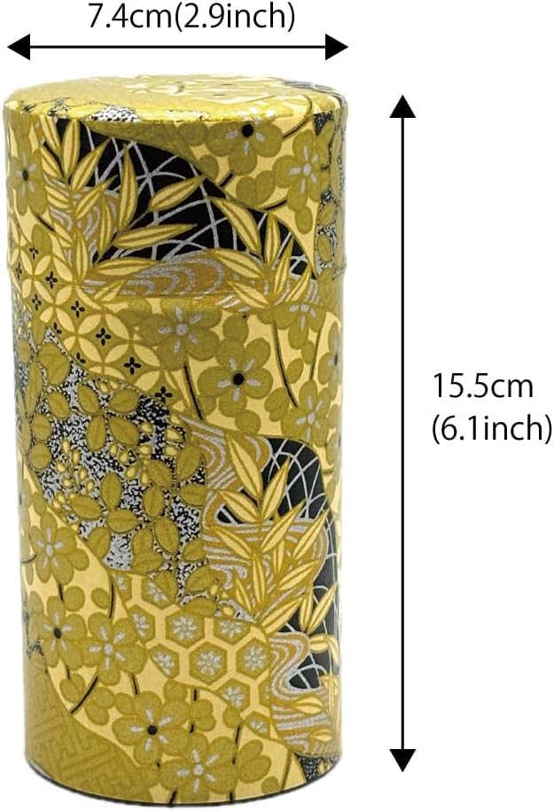 野口熊太郎茶園 茶筒 茶缶 大容量 200g 和紙貼 中蓋付き 黄金絵柄 日本製 おしゃれ