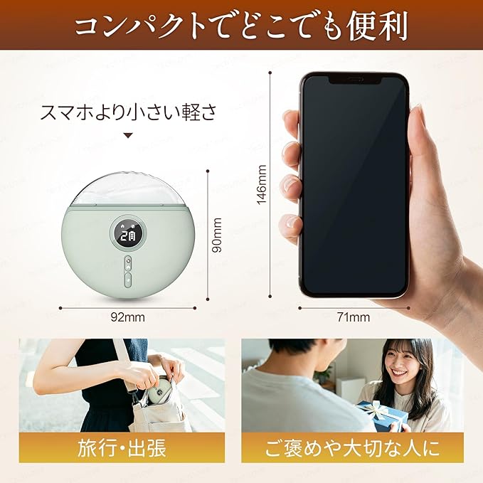 【手のひらサイズ&最適な贈り物】 約90mm 90mm 25mm、重さ約90gのミニサイズで、いつでもどこでも手軽にボディケアができます。 実用的で美しいデザインは男女問わず使いやすく、ご褒美アイテムとしてはもちろん、誕生日、母の日・父の日、敬老の日、バレンタイン、クリスマスなど大切な方への贈り物にも最適です。