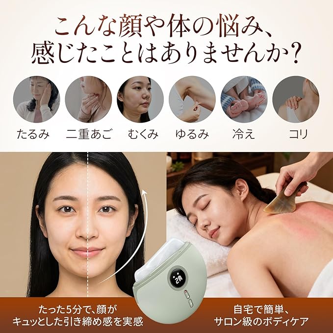 【3in1 多機能】 本製品は「温熱(最熱約50℃)・赤色LED・振動三段階」を搭載した電動かっさプレート。ご自宅で簡単にカッサケアを楽しめます。肌にハリとうるおいを与え、リラックスしたフェイス状態へサポート。メイクのりもよく、すべすべで透明感のある肌印象を目指せます。