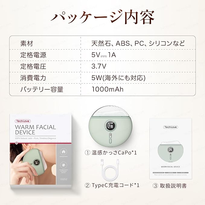 【天然石】Techlove 温感かっさCAPO かっさ プレート 顔、目元、首、など 全身兼用 電動かっさ カッサ 温熱・赤色LED・振動 美顔器 かっさ美顔器 リフト 振動浸透 美顔ローラー 顔痩せ 小顔 男女兼用 小顔ローラー Type-C充電式 誕生日プレゼント クリスマスギフト 女性 LV021R