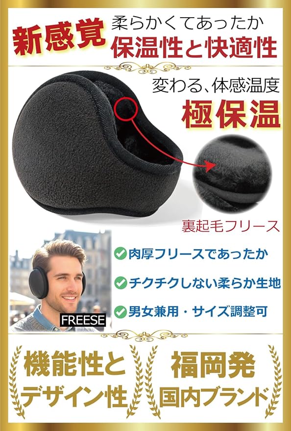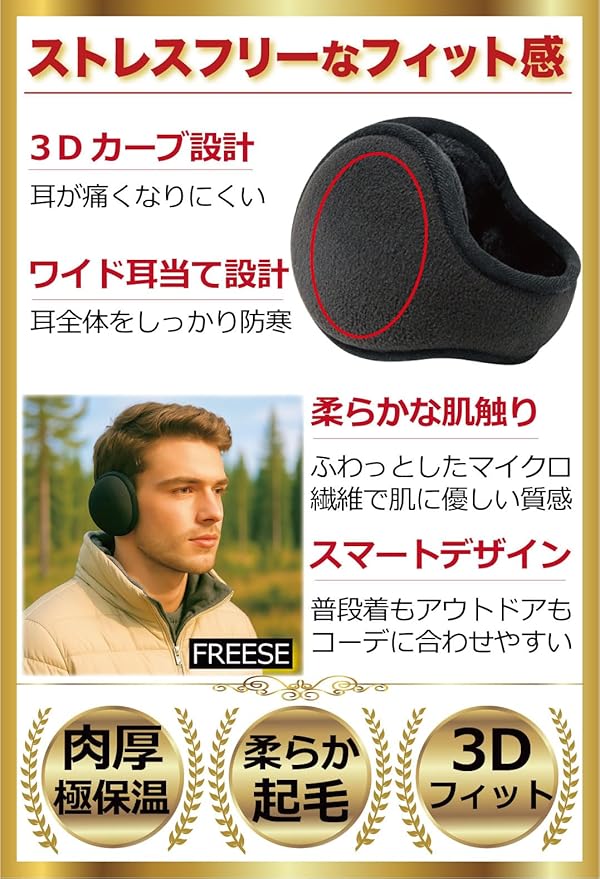 [FREESE] イヤーマフ 防寒 イヤーウォーマー 耳当て 肉厚ボア 裏起毛 冬 スポーツ 登山 釣り メンズ
