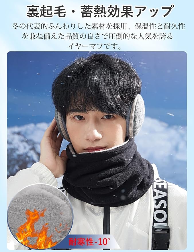 [Andeor] イヤーマフ 防寒 イヤーウォーマー 蓄熱効果アップ-10度防寒・180度折畳み・耳痛くない ・ズレにくい 耳あて ニット 耳カバー コンパクト