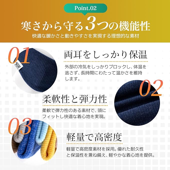 【スタイリッシュなデザイン】シンプルでスタイリッシュなデザインが魅力です。43色のカラーバリエーションを揃えているため、どんなスポーツウエアにも合わせやすくなっています。自分のスタイルに合わせた選択ができます。男女問わずユニセックスで使用できプレゼント・ギフトとしてもおすすめです。コンパクトばデザインなので、寒い時にさっと出して使えば耳が暖かく便利なアイテムです。