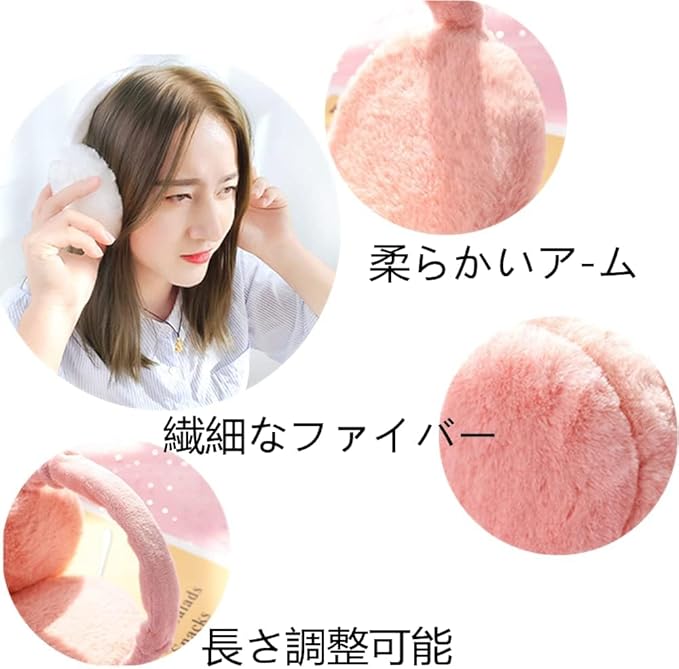 【やわらかなフェイクファー素材】ウサギの毛のような質感を再現したフェイクファー素材を使用。肌触りがやさしく、耳元を包み込み、冷たい風を和らげます。冬の防寒対策として日常使いに適しています。