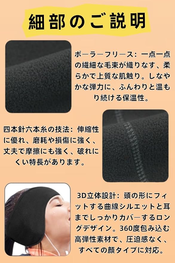 [Clair&Gina] イヤーウォーマー ヘッドバンド 耳あて 防寒 スポーツ用 耳マフラー メンズ レディース 自転車 ランニング 軽量 伸縮性 髪留め 防風 暖かい 耳当て 柔らかい (ブラック)