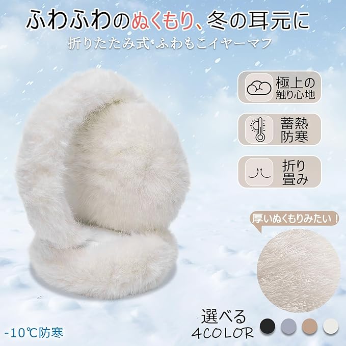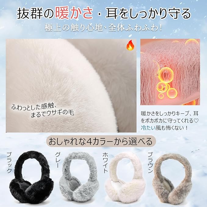 [Samlyru] イヤーマフ 防寒 耳当て レディース 【折り畳み式 蓄熱効果アップ】 ふわふわ 暖かい 可愛い 耳カバー コンパクト 携帯便利 保温 防風 通勤通学 アウトドア