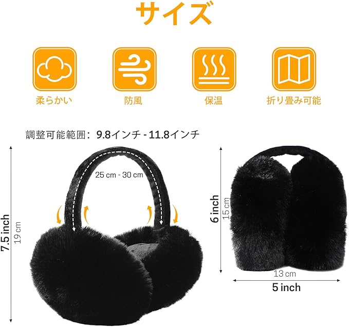 [GNEGNI] イヤーマフ 耳当て 耳カバー レディース 長さ調整可・耳痛くない 暖かい 裏起毛 ズレにくい 小顔効果 360度折畳み 防寒対策 携帯便利 軽量 通勤通学 旅行