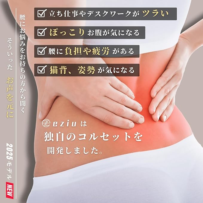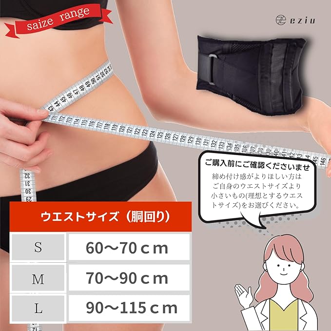 [eziu] 【理学療法士監修 コンパクト設計】 幅が狭いコルセット 腰サポーター 腰ベルト ぎっくり腰 ウエストトリマーベルト 加圧 腰用サポートベルト 強力固定 シェイプアップ 3Dメッシュタイプ 通気性 薄手 スポーツ 仕事用 調整可