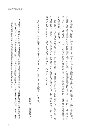 物語を読み進めていくうちにあなたの脳に刻まれている間違った常識が覆される、世界で初めて【腰痛の改善】を目的に書かれた真実のストーリー。