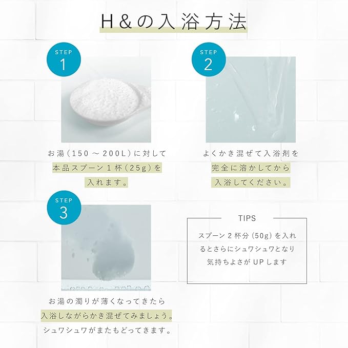 H&アッシュアンド 入浴剤 高濃度水素 炭酸 【全身を温かい気泡が包み込むxギフトx国産x計量スプーン入り】 (無香料)