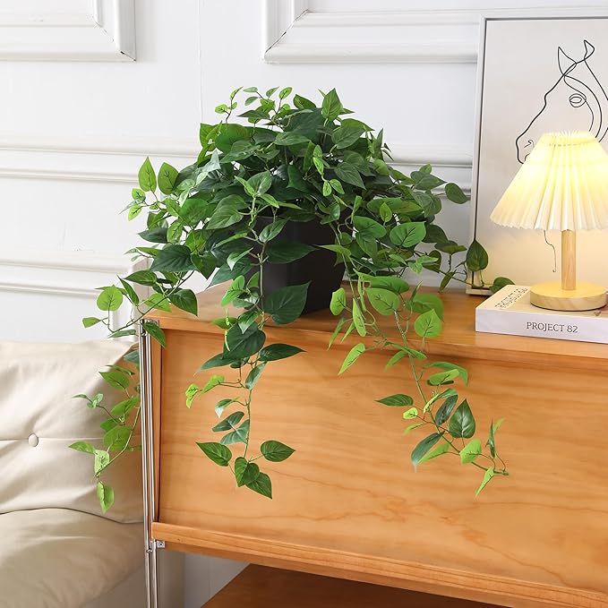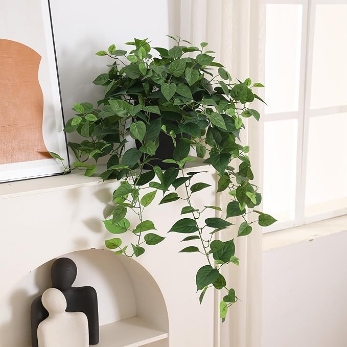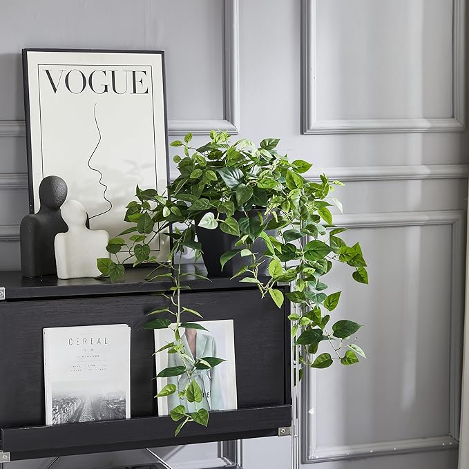 この見事な人工ポトスアイビー植物で屋内空間を変えましょう。メンテナンスなしで自然の豊かな美しさをご自宅にもたらします。 高さ30インチ、幅22.8インチの本物そっくりのシルク植物は、ハート型の葉がカスケードし、ドラマチックなトレーリング効果を生み出します。 リアルな葉は、洗練された現代的なブラックポットにあらかじめ配置されているので、組み立てる必要がなく、箱から出してすぐに飾ることができます。 緑が欲しい部屋、オフィス、スペースを明るくするのに最適です。この人工ポトスは、水やりをしたり剪定したりすることなく、一年中鮮やかな外観を維持します。 丁寧に作られた葉は、生きているポトスの自然な斑入りと質感を捉えています。また、後続のつるは、棚、マントルピース、吊り下げ式ディスプレイに奥行きと視覚的な興味を追加します。 このメンテナンス不要の装飾品は、本物の植物の時間を費やすことなく、永続的な植物の美しさを求める人にとって理想的なソリューションです。 ほこりっぽい水拭き。