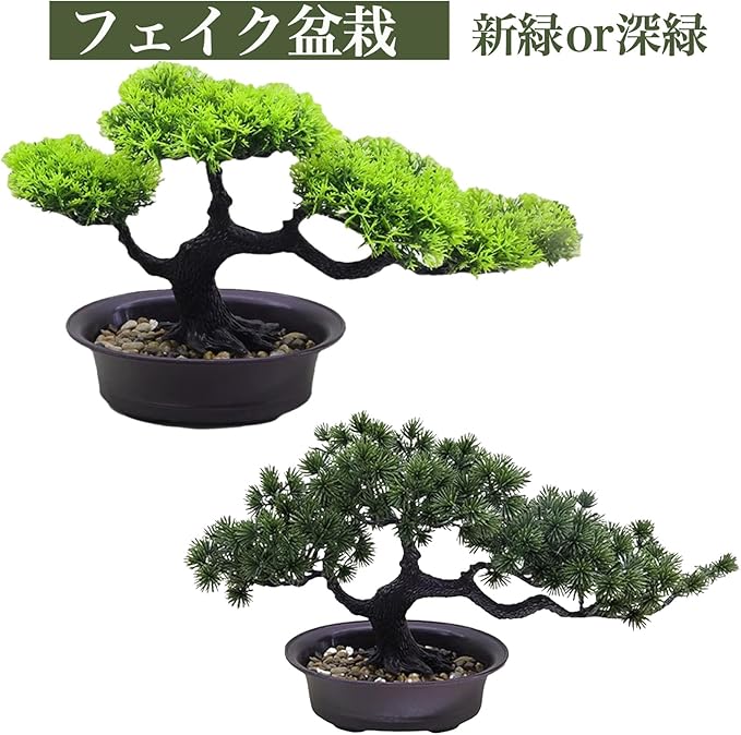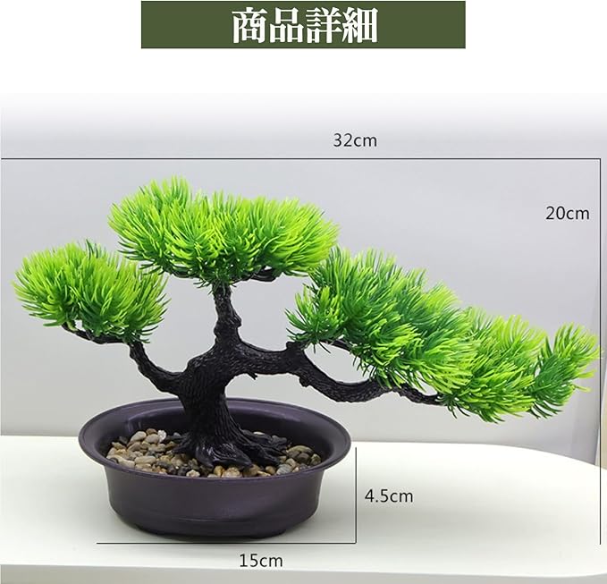 Hyack ミニ盆栽 松 ドライ盆栽 卓上 枯れない フェイクグリーン 造花 人工植物 お手入れ簡単(緑)