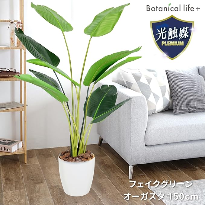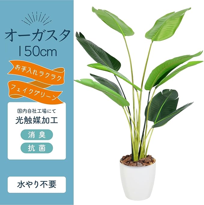 Botanical life+ フェイクグリーン 観葉植物 光触媒 日本製 消臭 抗菌 オーガスタ 150cm NBシリーズ