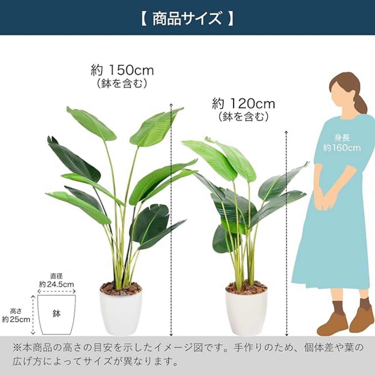 幅約80 奥行約50 高さ約150 cm(鉢含む)・鉢サイズ直径約24.5 高さ約26 cm・重量:2.2 kg