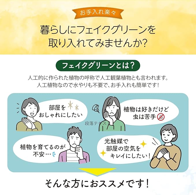 水やりや枯れる心配が一切不要で、忙しい方にもぴったり。